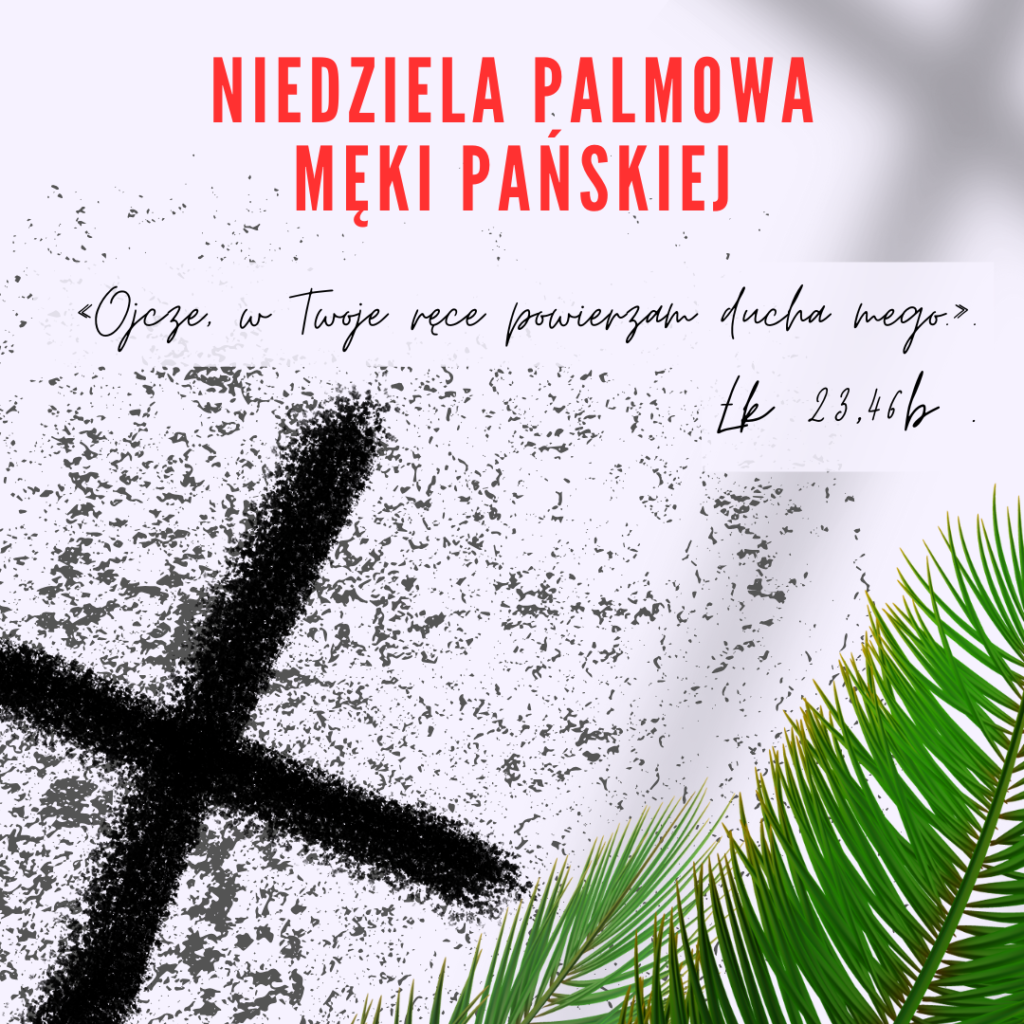 Niedziela Palmowa, czyli Męki Pańskiej – Jezus triumfalnie wjeżdza na osiołku do Jerozolimy, otoczony przez wiwatujący tłum z gałązkami palmowymi w rękach, wśród okrzyków: „Hosanna Synowi Dawida!”.