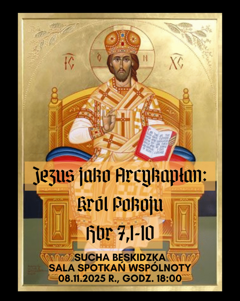 Po krótkiej przerwie serdecznie zapraszamy na sobotnie spotkanie uwielbienia z konferencją z cyklu: „Jezus jako Arcykapłan”.